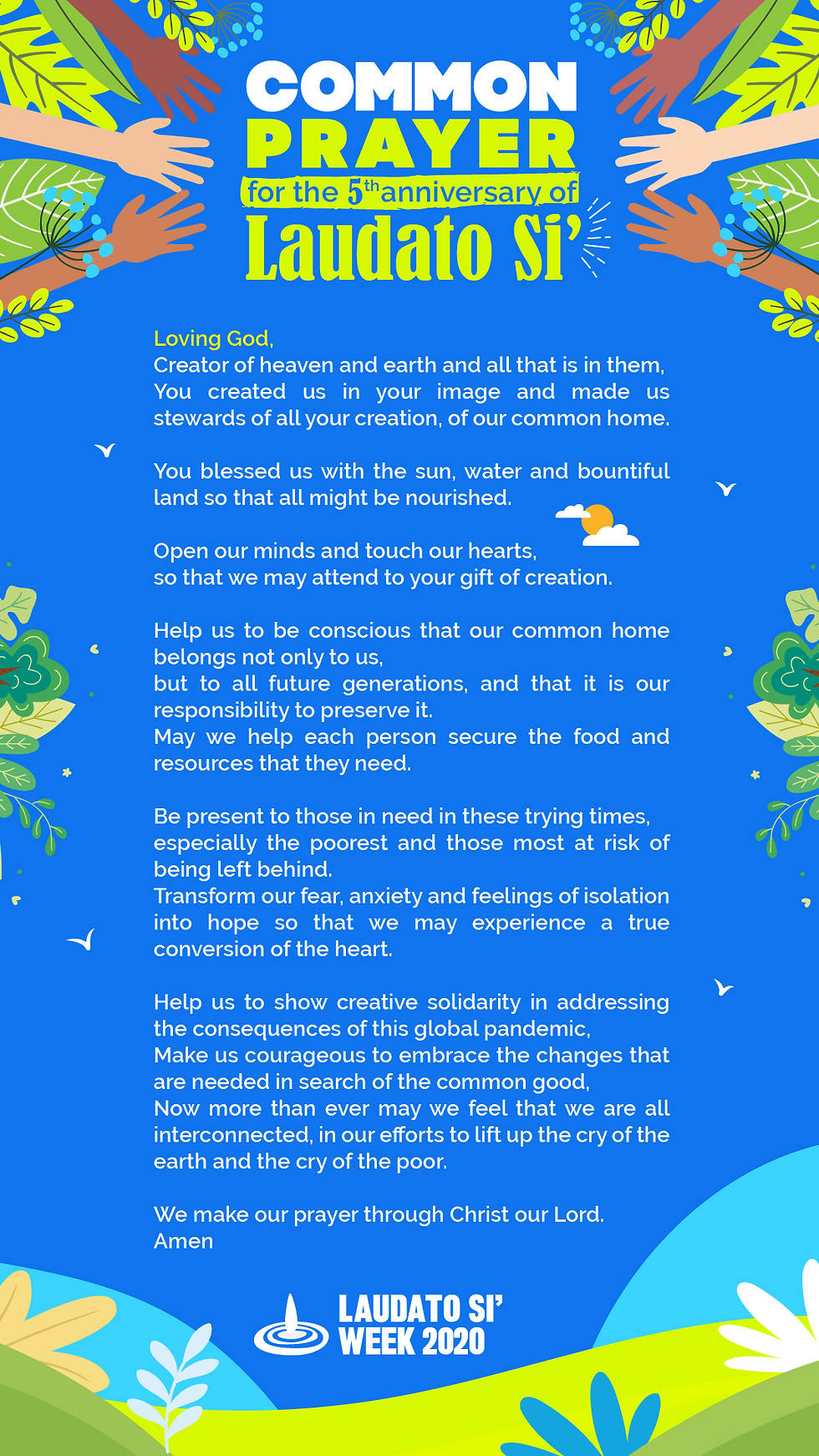 The Ascension of the Lord / Seventh Sunday of EasterHoly Trinity Catholic ChurchMay 24, 20201 min read Fr. Earl celebrates Mass in the Chapel of St. Ignatius:Worship Aid Laudato Si' WeekActionJoin Pope Francis in prayer at noon with this prayer: